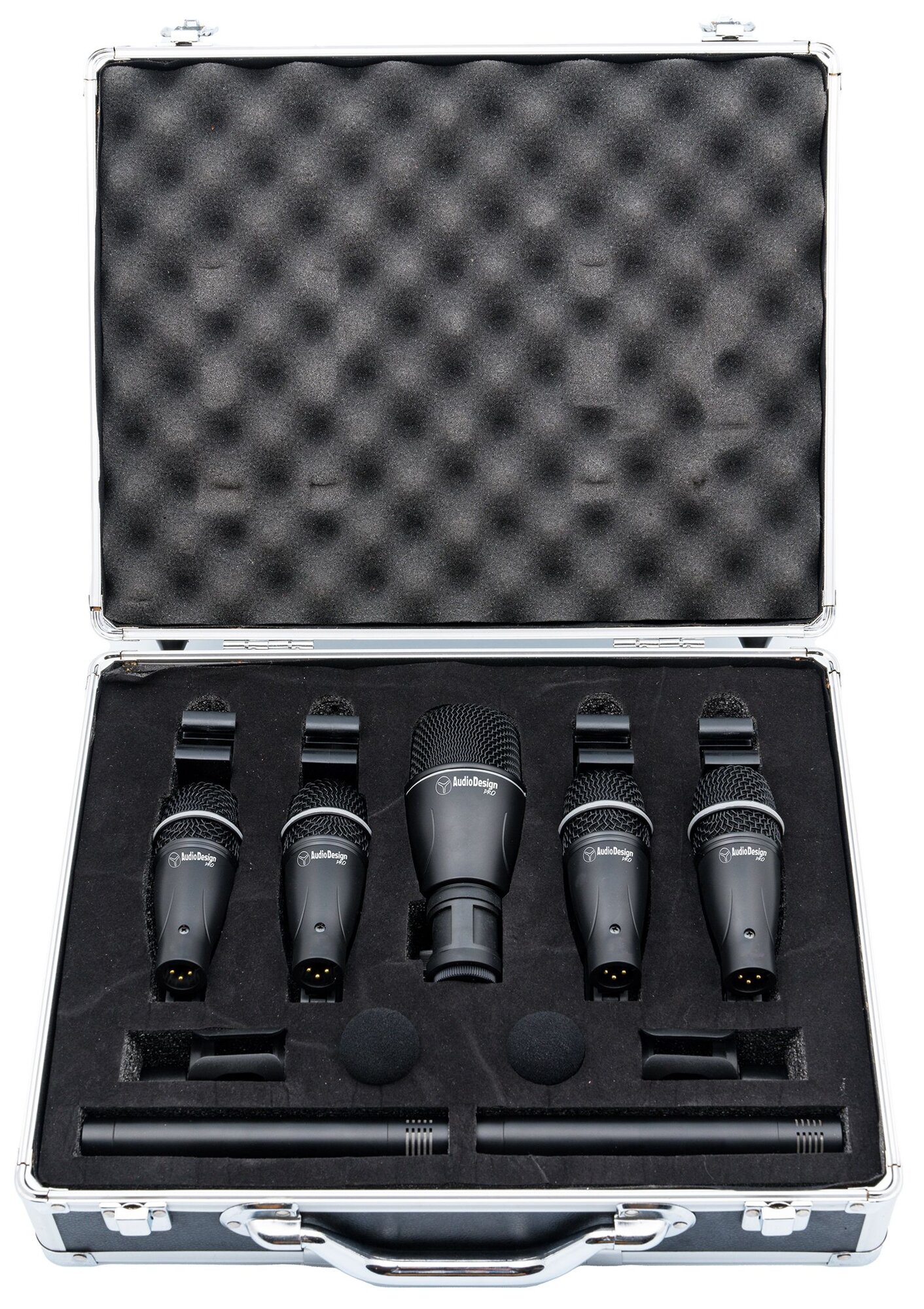 sada 7 ks mikrofonů, pro bicí nástroje, obsahuje: 1x typ A, 4x typ B, 2x typ C, v ceně pevný hliníkový kufr, 4x úchyt na korpus bubnu, 2x mikrofonní držák a hliníkový kufr
